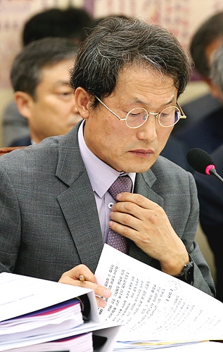 21일, 서울 여의도 국회 교육문화체육관광위원회 회의실서 열린 국회 교문위 국정감사 도중 조희연 서울시교육감이 답변자료를 살피고 있다.