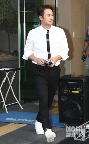 배우 엄태웅이 21일 오후 서울 삼성동 올림푸스타워 1층에서 올림푸스 카메라 브랜드 스토어 오픈행사를 갖기 위해 입장하고 있다.