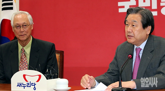 4일, 고촉통 전 싱가폴 총리가 서울 여의도 국회를 찾아 새누리당 김무성 대표와 면담을 갖고 있다.