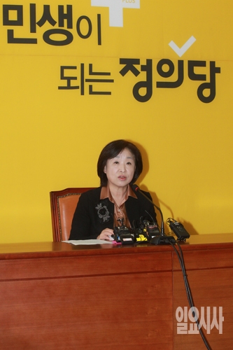 심상정 정의당 대표가 5일 오전 서울 여의도 국회에서 정부의 역사교과서 국정화 확정 고시 강행과 관련해 성명을 발표하고 있다.