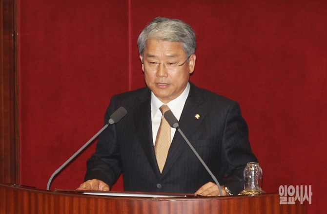 새롭게 국회 국토교통위원장으로 선출된 김동철 새정치민주연합 의원이 12일 오후 서울 여의도 국회에서 열린 국회 본회의에서 인사말을 하고 있다.