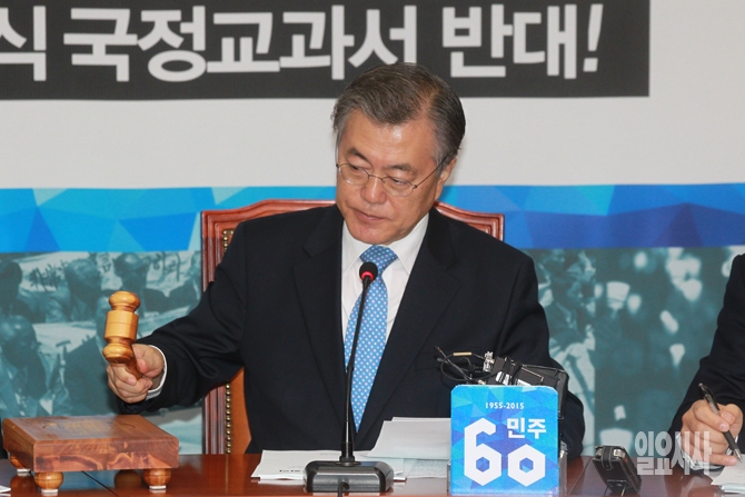 문재인 새정치민주연합 대표가 13일 오전 서울 여의도 국회에서 열린 새정치민주연합 확대간부회의 시작을 알리고 있다.