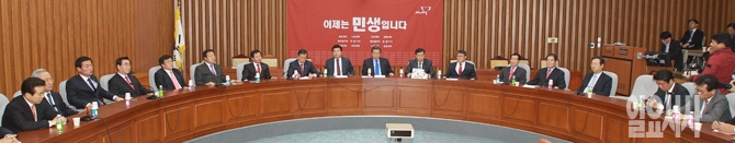 13일 오전 서울 여의도 국회에서 새누리당 김무성 대표를 비롯한 당 지도부가 참석한 가운데 새누리당 주요당직자회의가 열리고 있다.