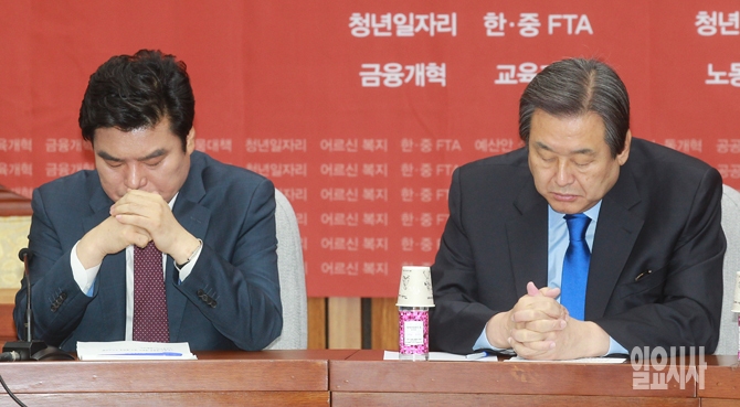 새누리당 김무성 대표와 원유철 원내대표가 13일 오전 서울 여의도 국회에서 열린 새누리당 주요당직자회의에서 생각에 잠겨 있다.