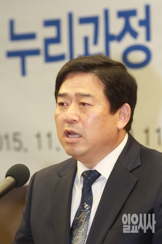 정광진 한국어린이집총연합회장이 16일 오전 서울 중구 한국프레스센터에서 가진 '어린이집 누리과정 정상화' 기자회견에서 기자회견문을 발표하고 있다.