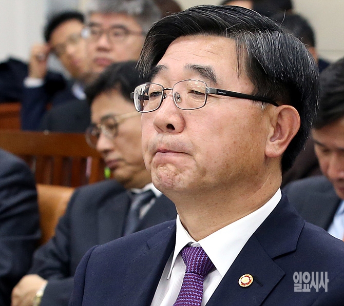 16일, 서울 여의도 국회서 열린 환경노동위원회 전체회의에서 이기권 고용노동부장관이 의원들의 질의를 듣고 있다.