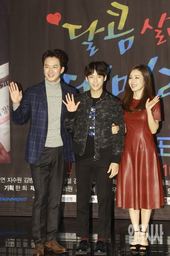 배우 정준호, 문정희, 민혁(비투비)이 16일 오후 서울 마포구 상암동 MBC 신사옥에서 열린 MBC 수목 미니시리즈 <달콤살벌 패밀리> 제작발표회에서 포토타임을 갖고 있다.