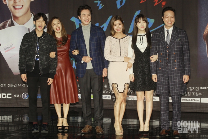 배우 정준호, 문정희, 정웅인, 유선, 민아(걸스데이), 민혁(비투비)이 16일 오후 서울 마포구 상암동 MBC 신사옥에서 열린 MBC 수목 미니시리즈 <달콤살벌 패밀리> 제작발표회에서 포토타임을 갖고 있다.