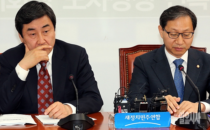 17일, 서울 여의도 국회서 열린 새정치민주연합 원내대책회의 도중 이종걸 원내대표가 잠시 깊은 생각에 잠겨 있다.