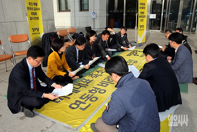 [포토] 본청 앞에서 의총 갖는 정의당