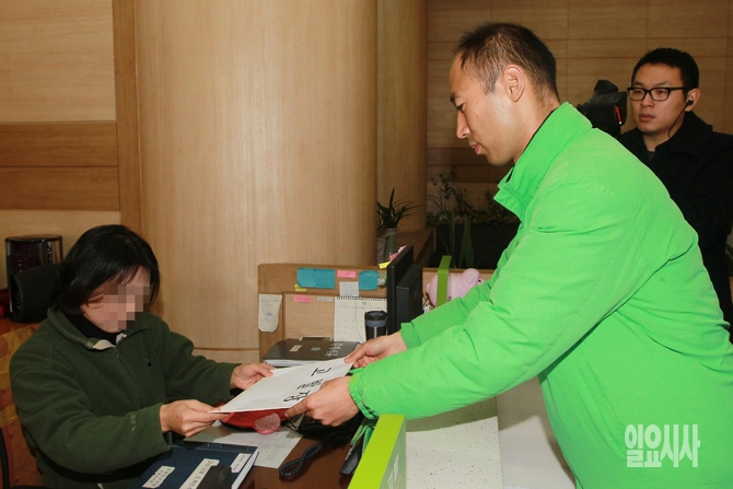 구교현 노동당 대표가 17일 오전 서울 서대문구에 위치한 경찰청 앞에서 가진 강신명 경찰청장 형사고발 기자회견 후 강신명 경찰청장에 대한 고발장을 접수하고 있다.