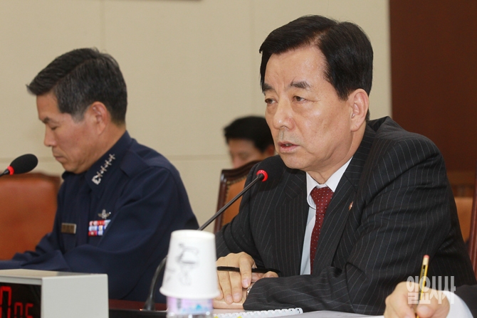 한민구 국방부 장관이 17일 오후 서울 여의도 국회에서 열린 국회 국방위원회 전체회의에서 한국형 전투기(KF-X) 사업과 관련해 여야 의원들의 질의에 답변하고 있다.