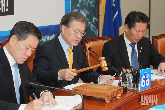 문재인 새정치민주연합 대표가 18일 오전 서울 여의도 국회에서 열린 새정치민주연합 최고위원회의에서 회의 시작을 알리고 있다.