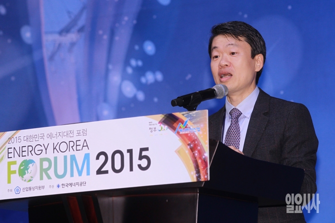 나승식 산업통상자원부 에너지신사업정책단장이 18일 오전 경기도 일산 킨텍스에서 열린 에너지코리아 포럼 2015에서 축사를 하고 있다.