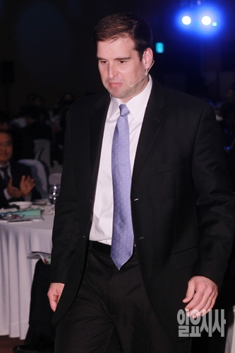 미국 테슬라모터스의 공동창업자이자 최고기술책임자(CTO)인 JB 스트라우벨이 18일 오전 경기도 일산 킨텍스에서 열린 에너지코리아 포럼 2015에서 기조연설을 위해 무대로 향하고 있다.