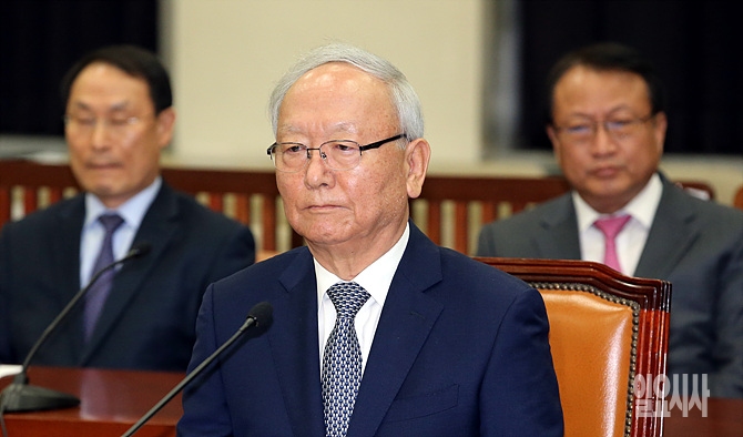 18일, 서울 여의도 국회 정보위원회 회의실서 열린 정보위 전체회의에 출석한 이병호 국정원장이 잠시 굳은 표정을 짓고 있다.