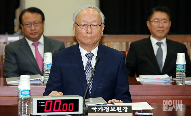 18일, 서울 여의도 국회 정보위원회 회의실서 열린 정보위 전체회의에 출석한 이병호 국정원장이 잠시 굳은 표정을 짓고 있다.