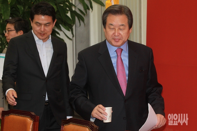 김무성 새누리당 대표가 19일 오전 서울 여의도 국회에서 열린 새누리당 최고위원회의에 입장하고 있다.