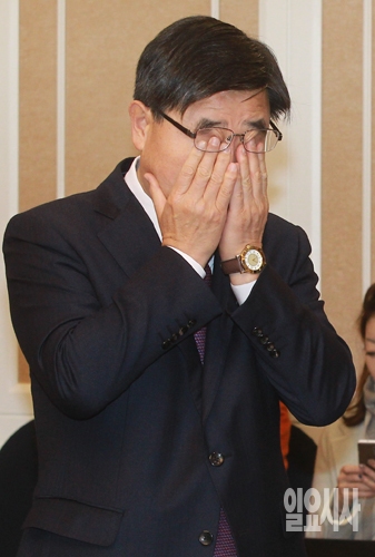 이기권 고용노동부 장관이 20일 오전 서울 여의도 국회에서 열린 '5대 노동개혁 법안 관련 당정협의'에서 얼굴을 만지고 있다.
