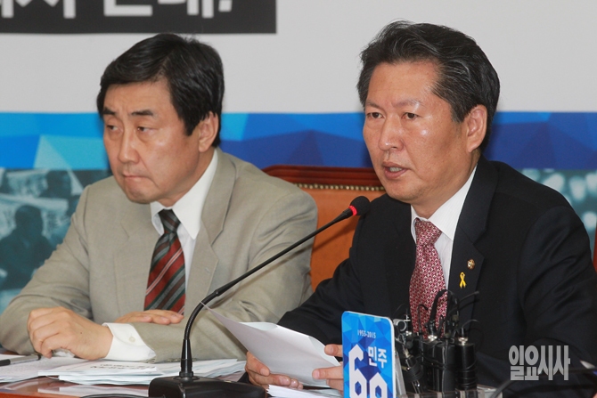 정청래 새정치민주연합 최고위원이 20일 오전 서울 여의도 국회에서 열린 새정치민주연합 최고위원회의에서 모두발언을 하고 있다.