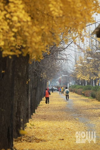 가을의 끝자락이 가까워진 20일 오전 서울 송파구 올림픽공원 인근 인도에 노란 은행잎들이 쌓여 있다.