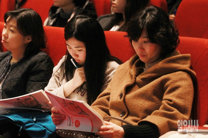 대입수험생과 학부모가 7일 오후 서울 동대문구 경희대학교 평화의 전당에서 서울시교육청 산하 교육연구정보원의 주관으로 열린 2016 대입 정시전형 대비 학부모 진학설명회에서 대학입학 자료집을 보며 생각에 잠겨 있다.
