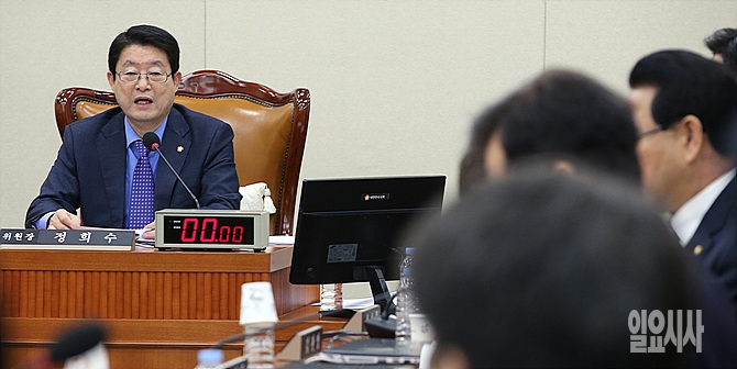 7일, 서울 여의도 국회 기획재정위원회 회의실서 열린 기재위 전체회의서 정희수 기재위원장이 회의를 진행하고 있다.