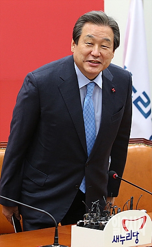 7일, 서울 여의도 국회 새누리당 당대표실에서 김무성 대표가 '노동법 관련' 박근혜 대통령과의 면담 후 브리핑에 앞서 취재진에게 인사를 하고 있다.