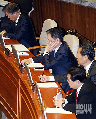 9일, 서울 여의도 국회서 열린 제337회 정기국회 본회의 도중 최근 새정치민주연합 문재인 대표의 사퇴를 요구하며 최고위원직을 사퇴했던 새정치민주연합 주승용 의원이 골똘한 표정으로 생각에 잠겨 있다.
