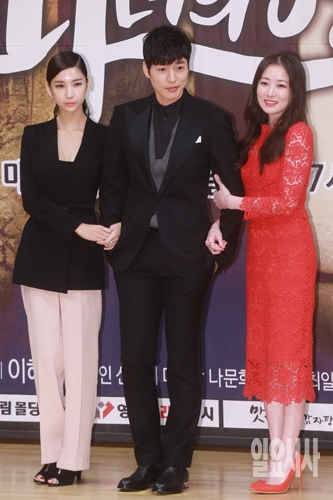 배우 이해인, 서지석, 최정원이 10일 오후 서울 양천구 목동 SBS 사옥에서 열린 드라마 <마녀의 성> 제작발표회에서 포토타임을 갖고 있다.