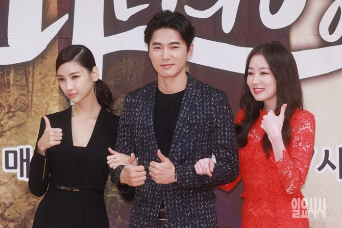 배우 이해인, 데니안, 최정원이 10일 오후 서울 양천구 목동 SBS 사옥에서 열린 드라마 <마녀의 성> 제작발표회에서 포토타임을 갖고 있다.