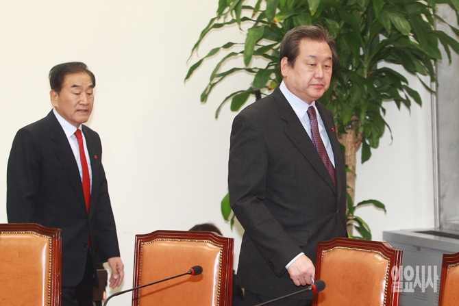 김무성 새누리당 대표가 23일 오전 서울 여의도 국회에서 열린 새누리당 최고중진연석회의에 입장하고 있다.