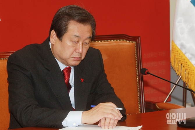 김무성 새누리당 대표가 24일 오전 서울 여의도 국회에서 열린 새누리당 최고위원회의에서 생각에 잠겨 있다.