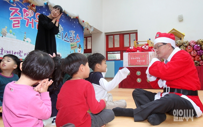 크리스마스 이브인 24일 오전 정의화 국회의장이 국회 어린이집을 찾아 어린이과 캐럴송을 부르고 있다.