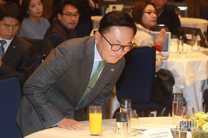 박현주 미래에셋그룹 회장이 28일 오전 서울 광화문 포시즌호텔에서 열린 미래에셋증권의 KDB대우증권 인수 우선협상대상자 선정 관련 기자간담회에서 자리에 착석하고 있다.