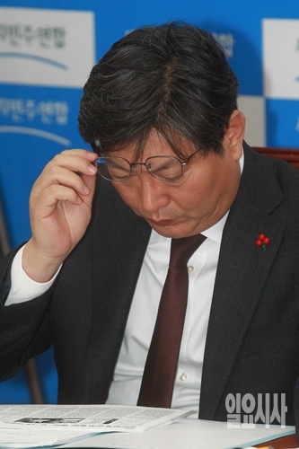 이춘석 더불어민주당 원내수석부대표가 29일 오전 서울 여의도 국회에서 열린 더불어민주당 원내대책회의에서 자료를 보고 있다.