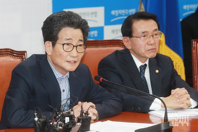 이목희 더불어민주당 정책위의장이 29일 오전 서울 여의도 국회에서 열린 더불어민주당 원내대책회의에서 모두발언을 하고 있다.