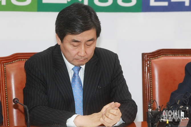 이종걸 더불어민주당 원내대표가 29일 오전 서울 여의도 국회에서 열린 더불어민주당 원내대책회의에서 생각에 잠겨 있다.