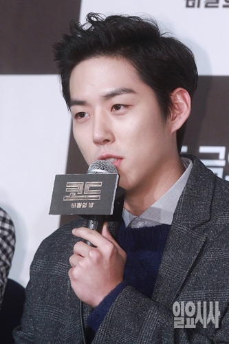 배우 백성현이 29일 오전 서울 마포구 상암동 스탠포드호텔에서 열린 JTBC 새 예능프로그램 <코드-비밀의 방> 제작발표회에서 인사말을 하고 있다.