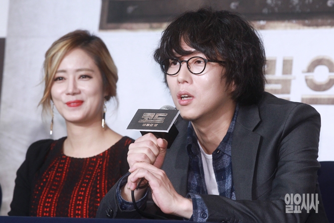 그룹 페퍼톤즈의 멤버 신재평이 29일 오전 서울 마포구 상암동 스탠포드호텔에서 열린 JTBC 새 예능프로그램 <코드-비밀의 방> 제작발표회에서 인사말을 하고 있다.