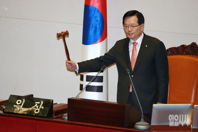 정의화 국회의장이 8일 오후 서울 여의도 국회에서 열린 본회의에서 북한의 제4차 핵실험 규탄 및 핵폐기 촉구결의안을 상정하고 있다.