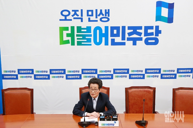 이목희 더불어민주당 정책위의장이 12일 오전 서울 여의도 국회에서 정책위의장 현안 관련 기자간담회를 갖고 있다.