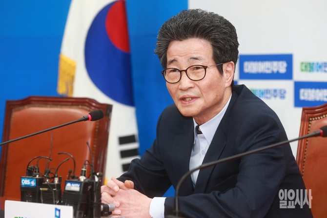 이목희 더불어민주당 정책위의장이 12일 오전 서울 여의도 국회에서 정책위의장 현안 관련 기자간담회를 갖고 있다.