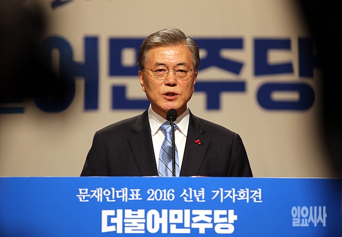 19일, 서울 여의도 국회서 더불어민주당 문재인 대표가 2016 신년 기자회견을 갖고 있다.