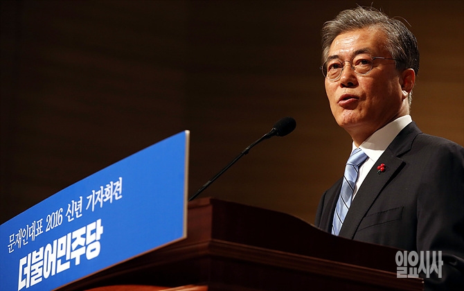 19일, 서울 여의도 국회서 더불어민주당 문재인 대표가 2016 신년 기자회견을 하고 있다.