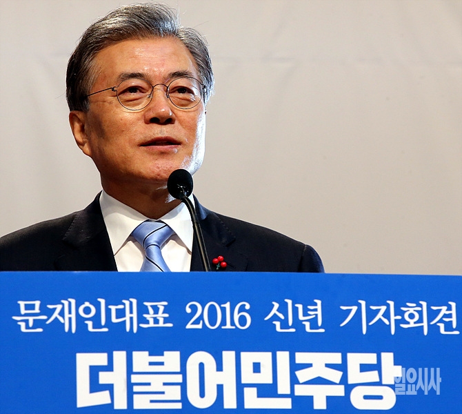 19일, 서울 여의도 국회서 더불어민주당 문재인 대표가 2016 신년 기자회견을 갖고 있다.