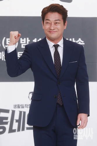 배우 조성하가 19일 오후 서울 영등포 타임스퀘어 아모리스홀에서 열린 OCN 주말드라마 <동네의 영웅> 제작발표회에서 포토타임을 갖고 있다.