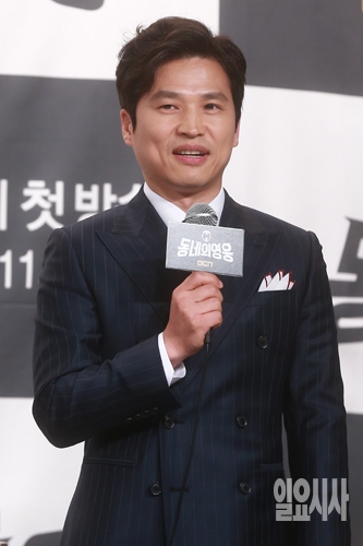 곽정환 감독이 19일 오후 서울 영등포 타임스퀘어 아모리스홀에서 열린 OCN 주말드라마 <동네의 영웅> 제작발표회에서 인사말을 하고 있다.