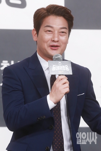 배우 조성하가 19일 오후 서울 영등포 타임스퀘어 아모리스홀에서 열린 OCN 주말드라마 <동네의 영웅> 제작발표회에서 인사말을 하고 있다.