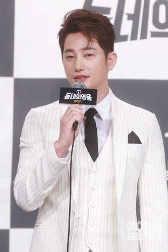 배우 박시후가 19일 오후 서울 영등포 타임스퀘어 아모리스홀에서 열린 OCN 주말드라마 <동네의 영웅> 제작발표회에서 인사말을 하고 있다.